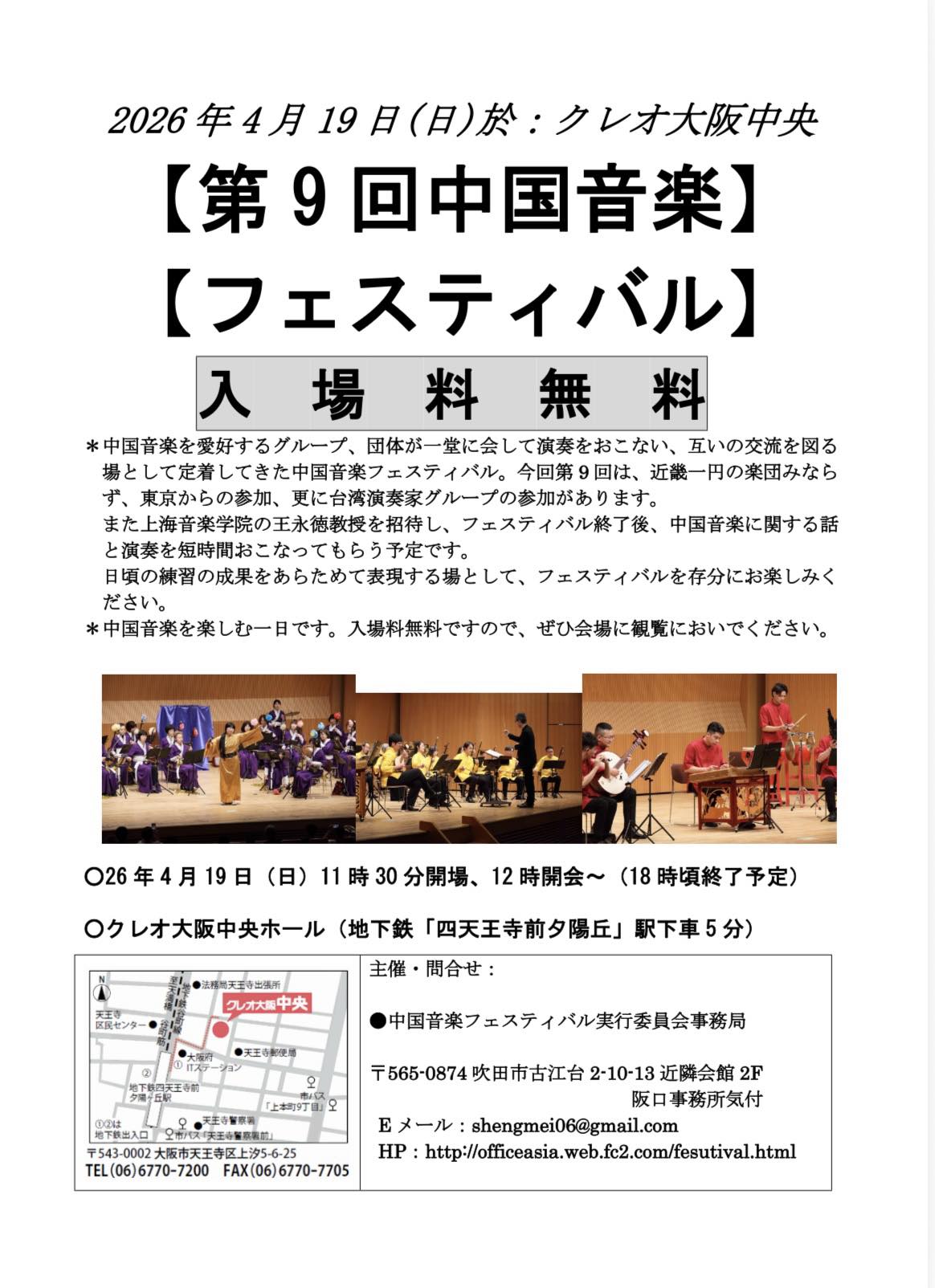 春の一日、と言っても今年は初夏を思わせる日もありますが、どっぷりと中国音楽を、中国楽器の音色をたのしんでみませんか。